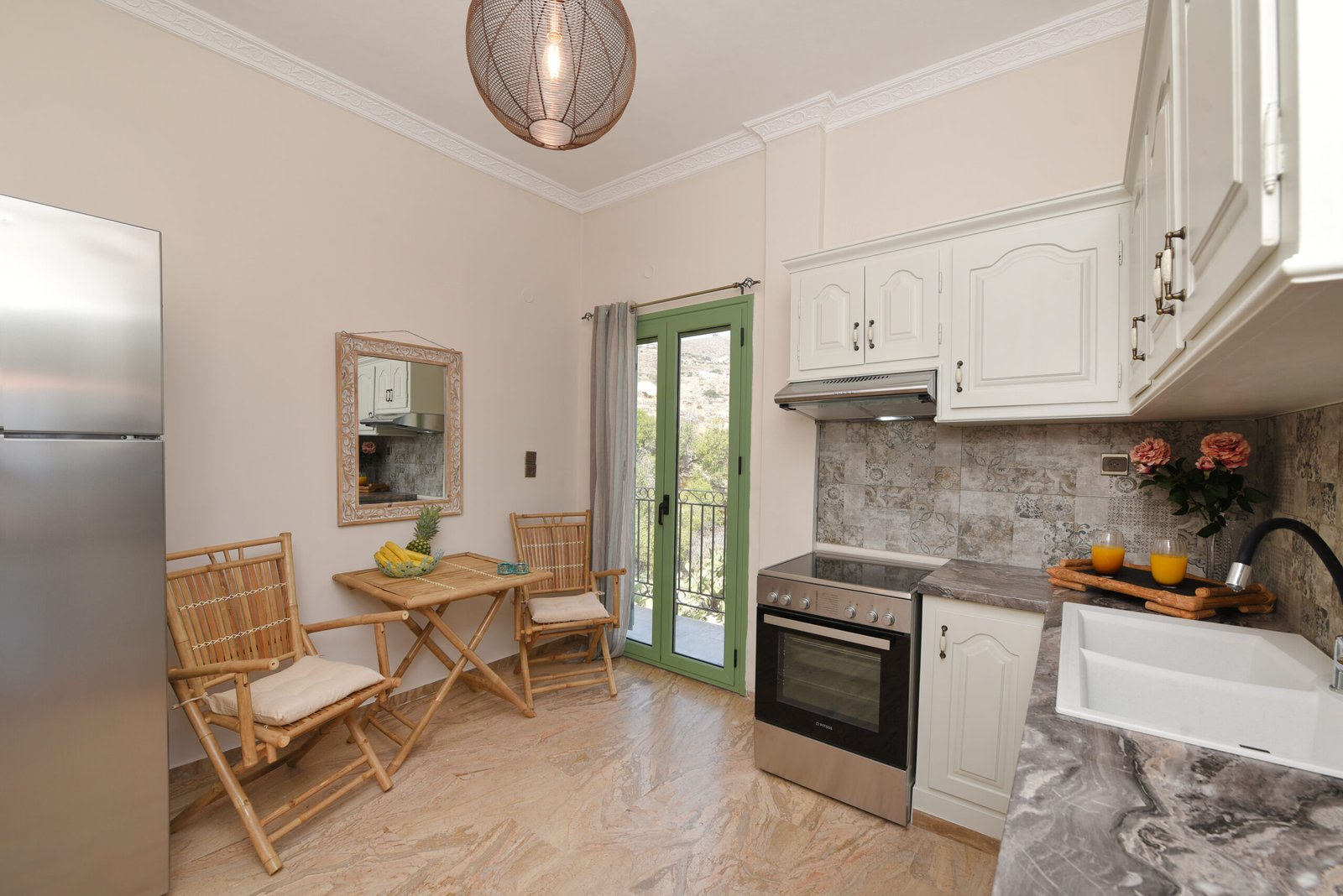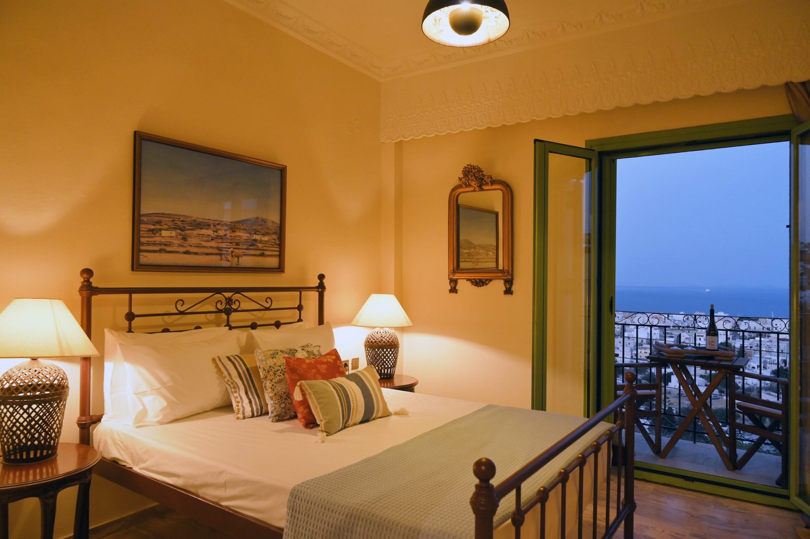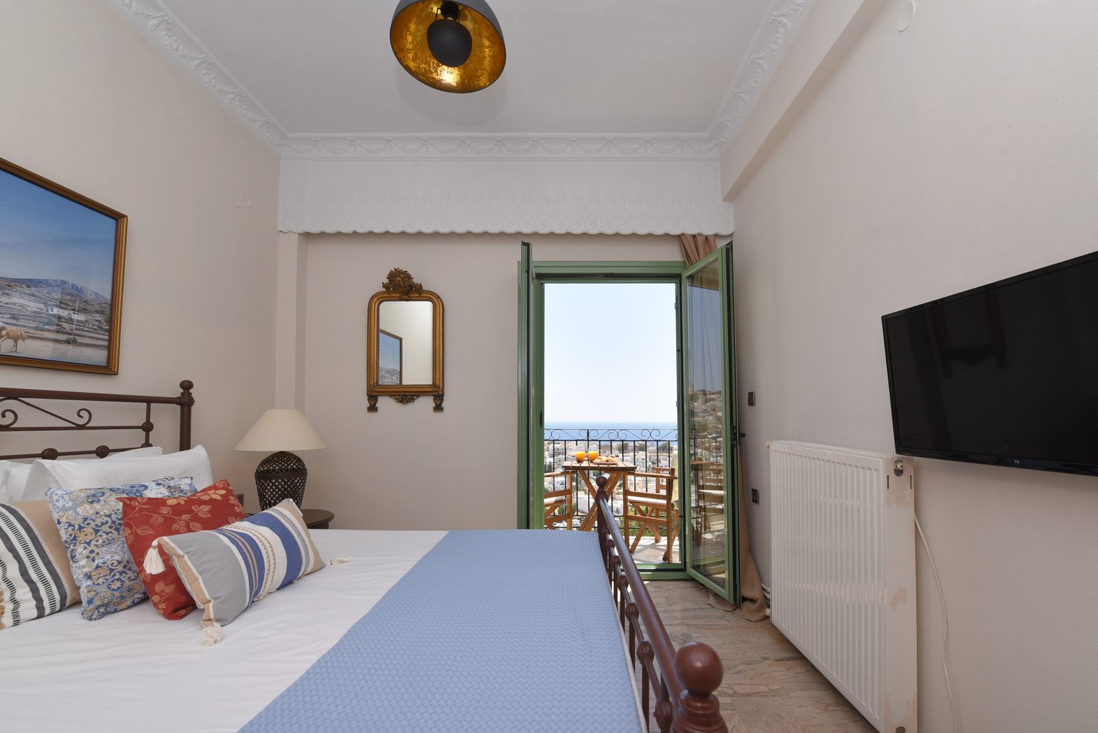 The apartment is located 1.5km from the port of Ermoupolis and 5′ by car from Miaouli Square, which is located at the City Hall of the City. It is located on a hill, with a stunning view of the whole of Ermoupolis. From the balconies one can see the churches, postcards of the island, The Orthodox Church of Resurrection and the Catholic church of St. George. It maintains the traditional neighborhood of the island. It has easy parking.